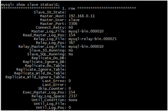 Mysql [(none)]> SHOW SLAVESTATUS\G;