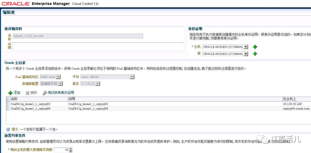 一个DBaaS就是一个数据库池,可以对这个池内的数据库统一的使用服务模板,例如创建实例。所以的DBaaS必须创建在同一个PaaS结构区中。