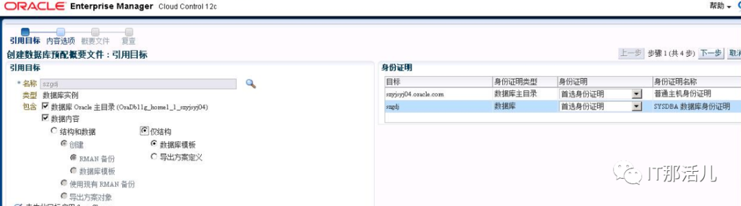 这个概要文件可以是rman备份,可以是dbca建库时的template,可以是expdp备份等。这里不需要数据,采用template选项,按照提示进行创建。