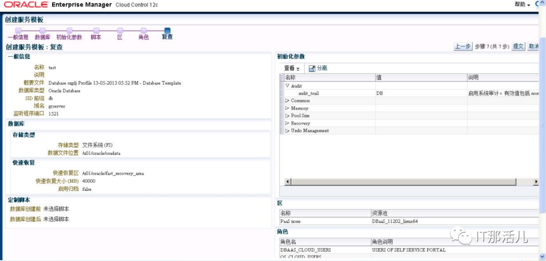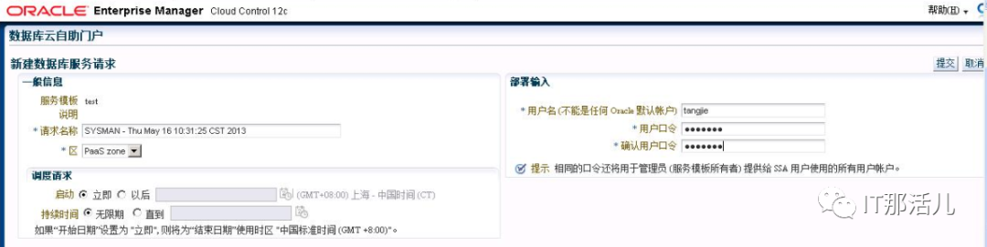 最后就可以对这个PaaS结构区建立相应的服务模板,创建数据库实例这个服务模板必须从现有的数据库实例中复制出结构、数据(可选),即概要文件。