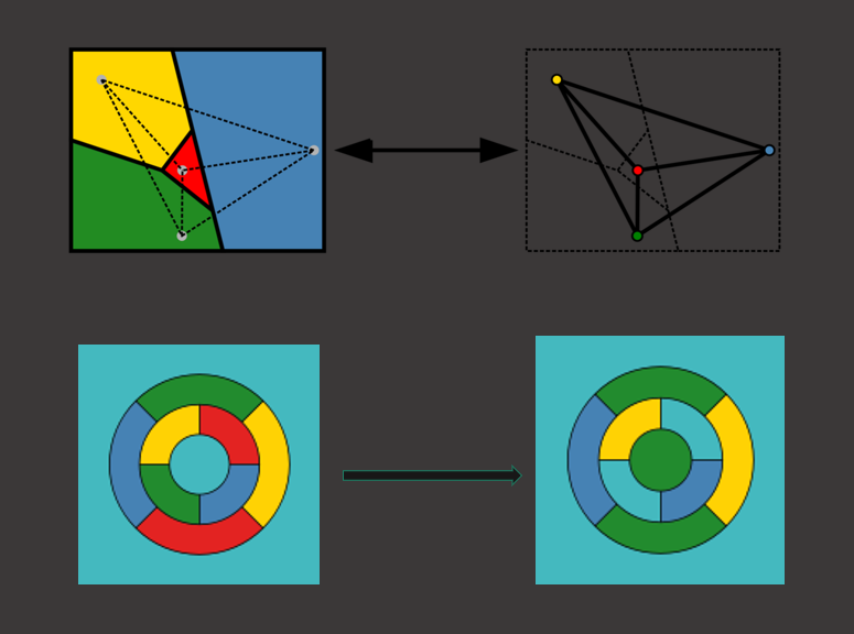 图:地图上色问题是数学中典型的NP完全问题。随着计算机的算力的提升被不断演进,直至2005年,通过复杂的人机交互理论证明软件的帮助,以通用的方式证明了四色地图的可行性,后期又演进到五色图