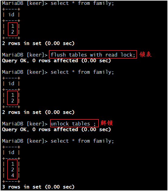 MariaDB [keer]>flush tables withread lock;