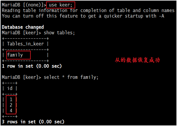 4)查看从是否恢复成功: