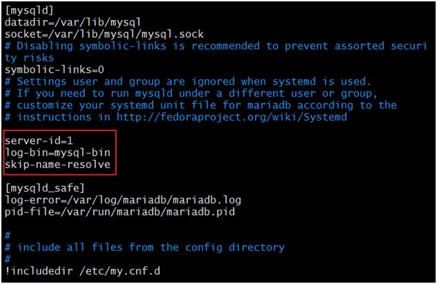 2. relay_log = mysql-relay-bin //打开Mysql日志,日志格式为二进制