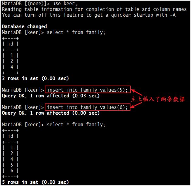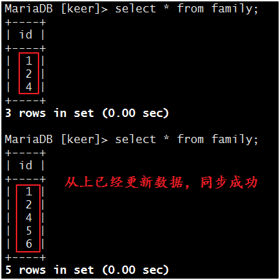 设置完毕,我们来测试一下,当主上有操作时,从上是否更新: