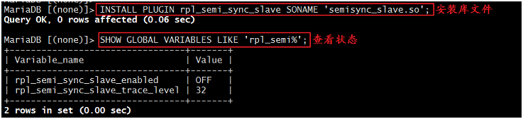 1. MariaDB [(none)]>INSTALL PLUGIN rpl_semi_sync_slave SONAME 'semisync_slave.so';