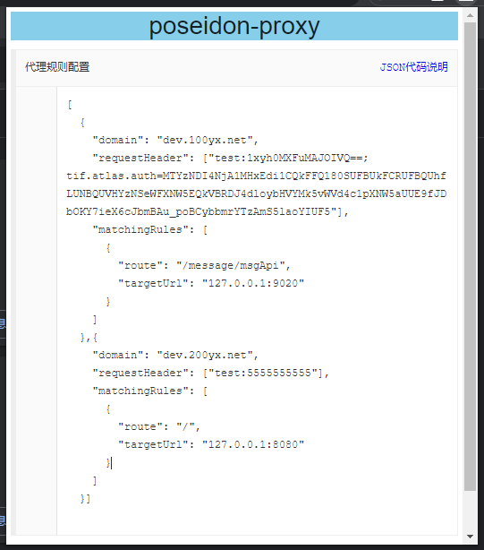 插件的 json 内容是一个数组,每个 json 代表一个代理规则,json 中字段说明