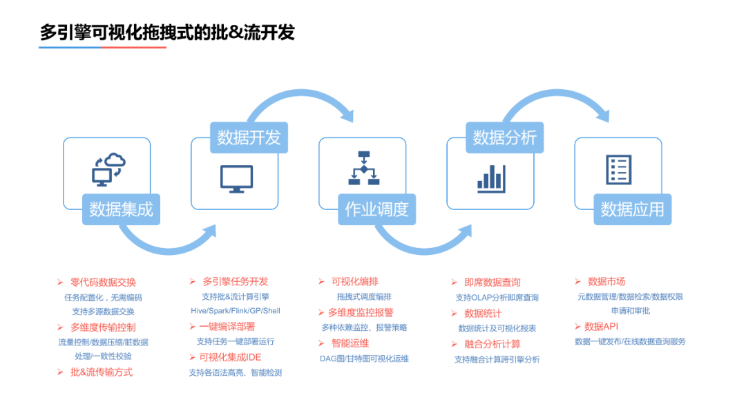 数据分析,平台展现的分析需求支持类似greenplum等OLTP类型的分析引擎。临时分析需求支持presto对Hive表或者gp中的数据进行联合分析。