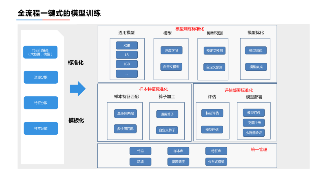 样本特征标准化,建设通用的样本库、特征库、解决了训练过程中的数据口径问题。