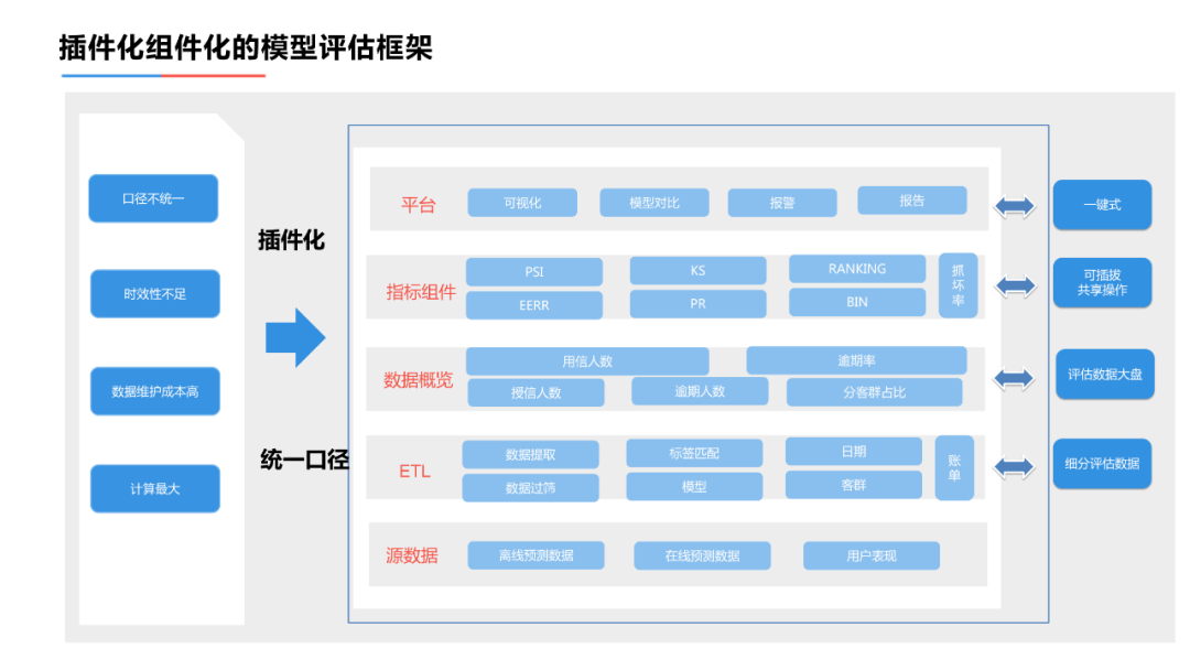 插件化和组件化的模型评估框架,在拓宽模型评估维度的同时,统一了模型评估的口径,抹平了模型的效果认知差异。