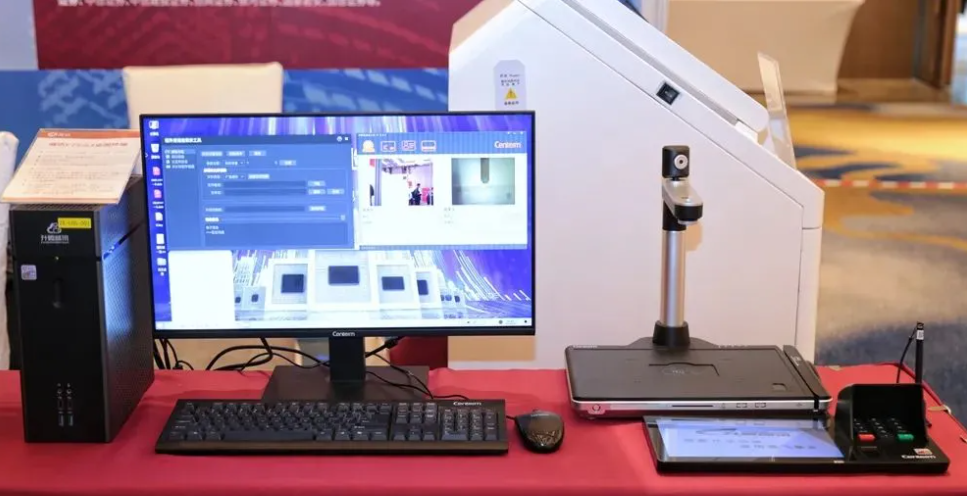 升腾威讯展示了基于兆芯KX-6000系列的威讯C73-G3台式机和威讯C73-G2云终端,搭配金融外设(智能高拍仪、电子签名柜外清)的金融柜面办公解决方案。