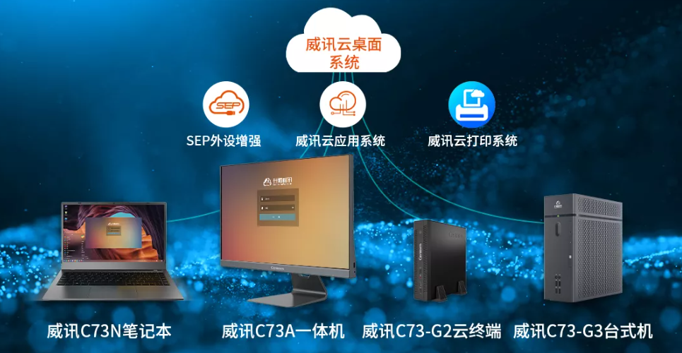 升腾威讯潜心研制打造基于兆芯平台的台式机、一体机、云终端、笔记本等不同形态的威讯系列桌面整机,并配套威讯云应用、SEP外设增强软件、威讯云打印系统和威讯云桌面系统等自研云软件,形成金融行业化整体解决方案。威讯云应用支持信创所有未迁移改造的业务系统;SEP外设增强软件支持99%以上外设使用;威讯云打印系统解决信创办公打印机兼容问题,打造“能用”、“好用”的信创办公环境。从信创整机到信创桌面云整体解决方案全自研,配套威讯云桌面系统可实现桌面与数据集中管理,数据不落地,提供安全可靠的信创云办公环境。