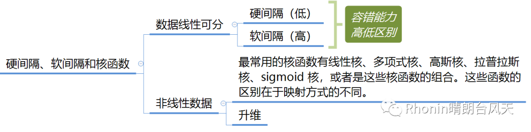 假如数据是完全的线性可分的,那么学习到的模型可以称为硬间隔支持向量机。同理,软间隔支持向量机,非线性支持向量机。