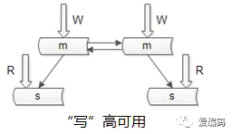 上面这个图是很多互联网公司mysql的架构,写仍然是单点,不能保证写高可用。