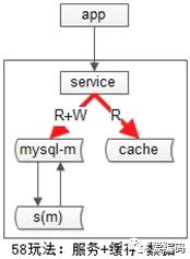 业务层不直接面向db和cache,服务层屏蔽了底层db、cache的复杂性。为什么要引入服务层,今天不展开,采用了“服务+数据库+缓存一套”的方式提供数据访问,用cache提高读性能。
