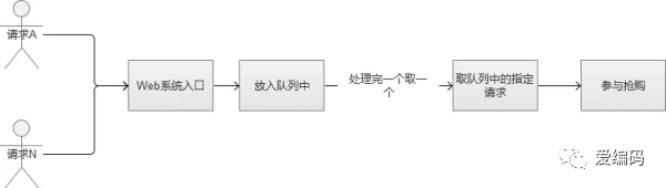 然后,我们现在解决了锁的问题,全部请求采用“先进先出”的队列方式来处理。那么新的问题来了,高并发的场景下,因为请求很多,很可能一瞬间将队列内存“撑爆”,然后系统又陷入到了异常状态。或者设计一个极大的内存队列,也是一种方案,但是,系统处理完一个队列内请求的速度根本无法和疯狂涌入队列中的数目相比。也就是说,队列内的请求会越积累越多,最终Web系统平均响应时候还是会大幅下降,系统还是陷入异常。