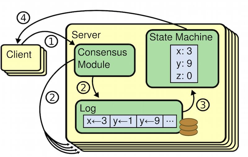 任何一台状态机,如果初始状态相同,按序执行相同的指令集,得到的结果状态也相同。