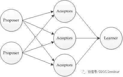 Paxos将系统中的角色分为提议者 (Proposer),决策者 (Acceptor),和最终决策学习者 (Learner):