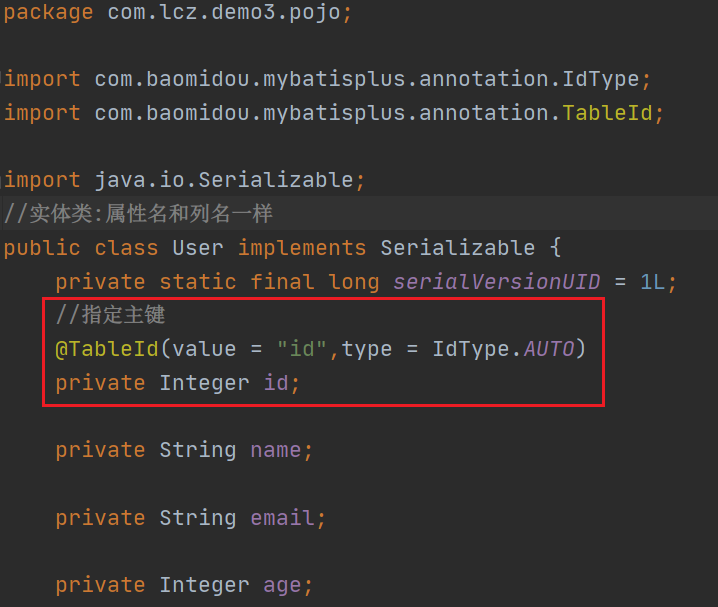 @TableId 设置主键, IdType.AUTO 使用自动增长产生主键