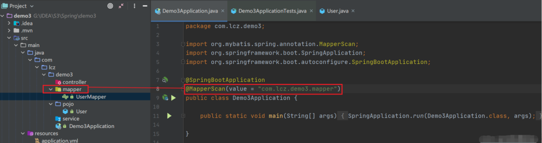 ◆ 添加@MapperScan 扫描 Mapper 文件夹
