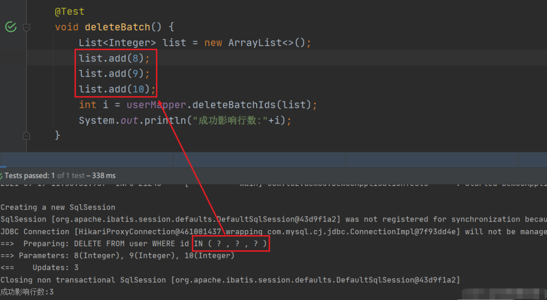 把要删除的 id 放入 List ,传给 deleteBatchIds()