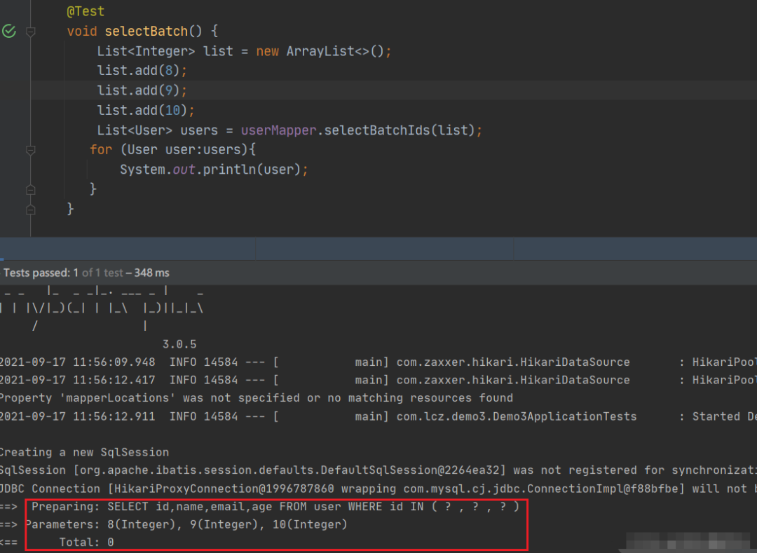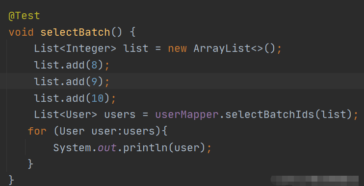 注:根据 id 查询记录,把需要查询的多个 id 存入到 List,调用 selectBatchIds(),