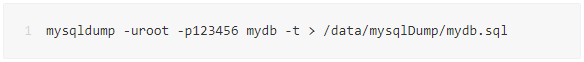 在MySQL中提供了命令行导出数据库数据以及文件的一种方便的工具mysqldump,我们可以通过命令行直接实现数据库内容的导出dump,首先我们简单了解一下mysqldump命令用法: