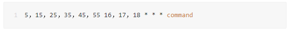 除了数字还有几个个特殊的符号就是"*"、"/"和"-"、",",*代表所有的取值范围内的数字,"/"代表每的意思,"/5"表示每5个单位,"-"代表从某个数字到某个数字,","分开几个离散的数字。
