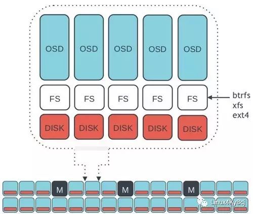 通过CRUSH算法和集群拓扑信息,客户端知道可以从哪个OSD访问数据,同时OSD也知道将数据副本备份到哪些节点保证数据的安全和高可用。