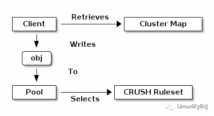Ceph客户端通过从Monitor获取集群拓扑信息,然后将对象存储pool中。pool的大小、副本数、CRUSH的ruleset以及PG的个数都决定了数据的存储。