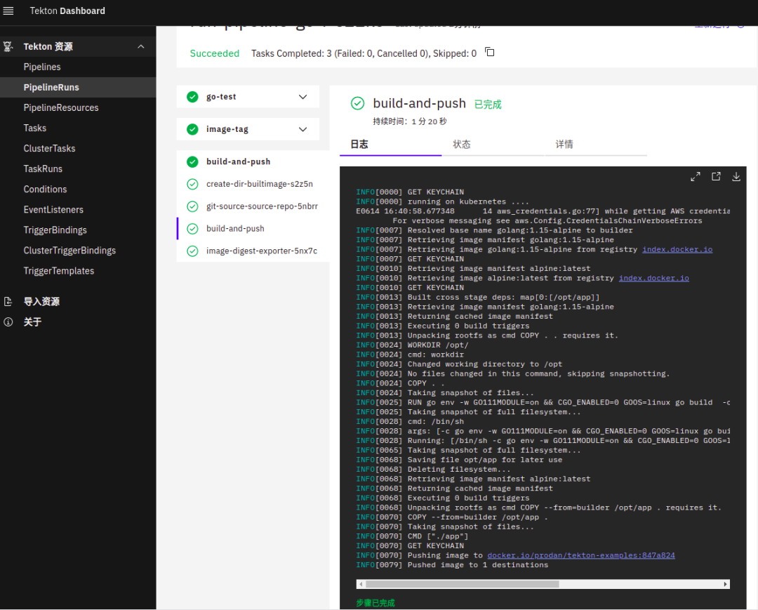 可以安装 Tekton CLI 工具, 更方便,比如 TaskRun ,tkn task start 就可以,而无需 kubectl 创建 TaskRun 资源对象。