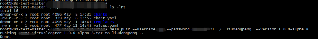 helm push --username {$uname} --password {$password} ./ {$repo name} --version 1.0.0-alpha.8