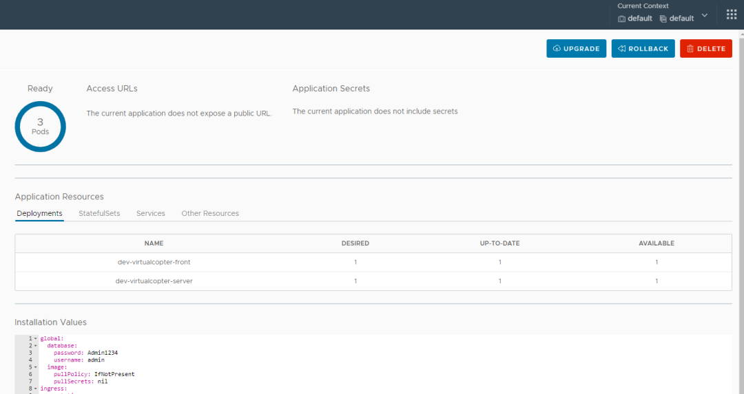 在 kubeapps 中可以查看应用安装的信息