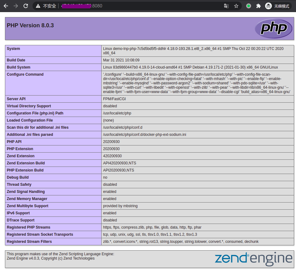 / # echo "<?php phpinfo();?>" >/usr/share/nginx/html/index.php