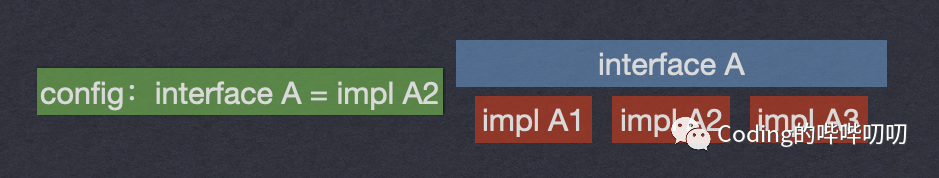 在系统实际运行的时候,会加载配置,用实现A2实例化一个对象来提供服务。