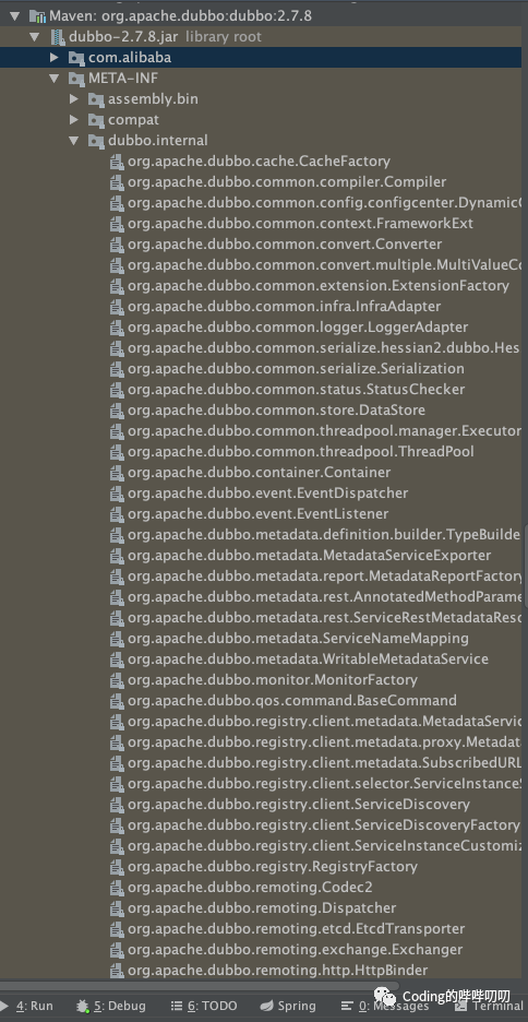 META-INF/dubbo/internal/ 目录:该目录存放 Dubbo 内部使用的 SPI 配置文件。
