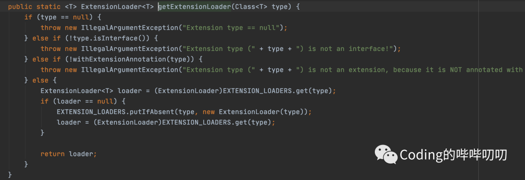 从上面的示例代码我们知道 ExtensionLoader