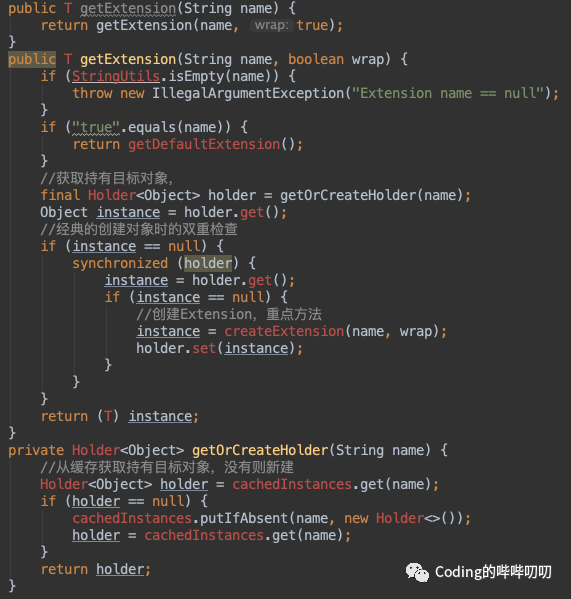 ,然后再通过 ExtensionLoader.getExtension(name)
