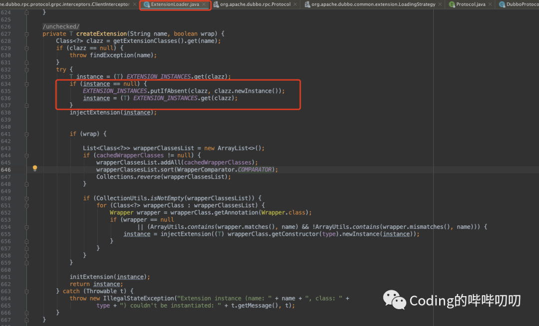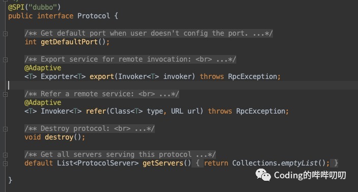 是重点,它是类似 Java SPI 中 ServiceLoader 的存在,我们拿DubboProtocol