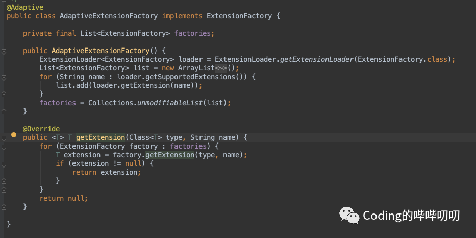 AdaptiveExtensionFactory的实现。