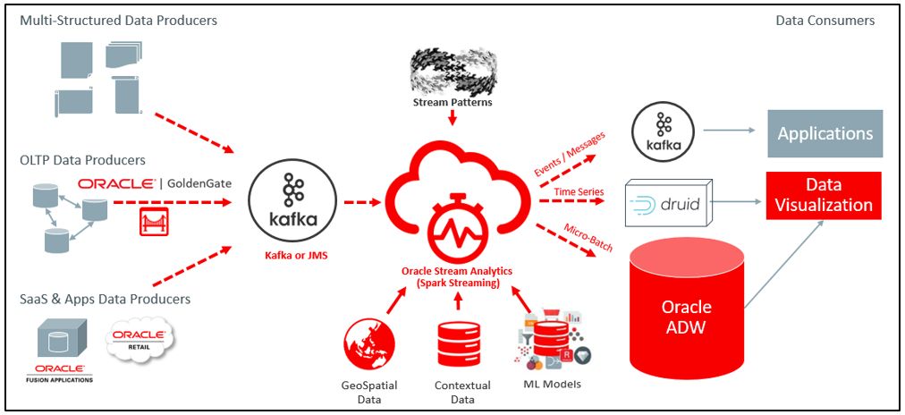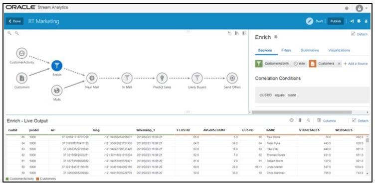 OSA为业务用户提供了动态创建和实施即时洞察解决方案。它允许用户通过实时图表,地图,可视化视图来实时浏览实时数据,并以图形方式构建流传输管道,而无需进行任何手工编码。OSA使用与Oracle连续查询引擎集成的Apache Kafka和Apache Spark Streaming在可伸缩且高度可用的集群大数据环境中执行。