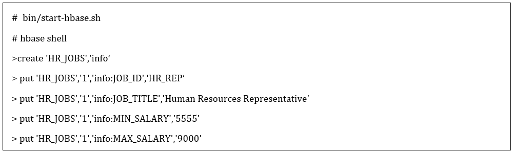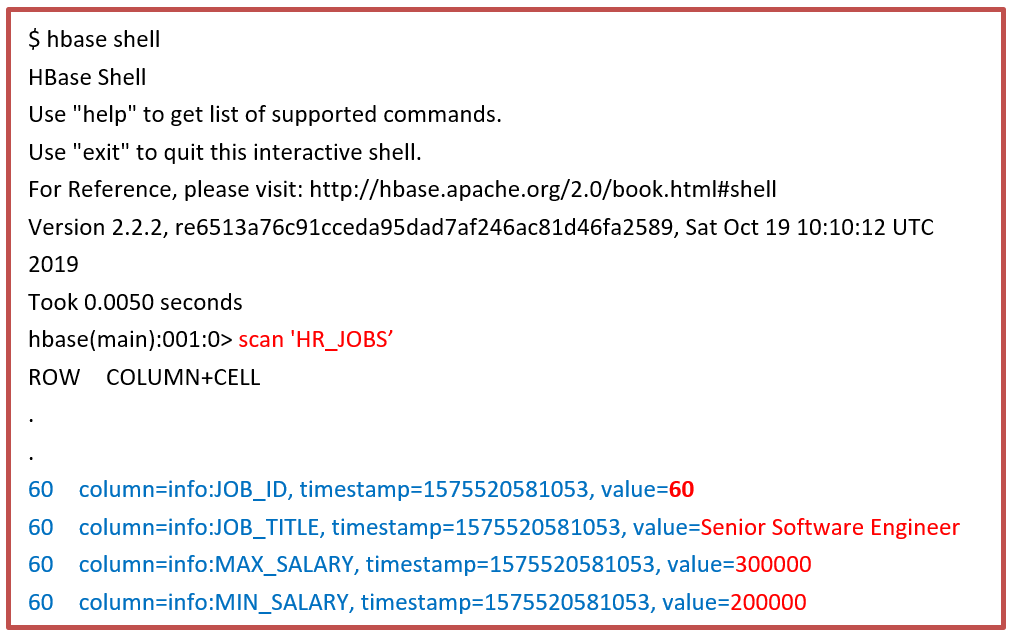 从HBase的HR_JOBS表中,可以看到源端插入的数据已经写入到该表中