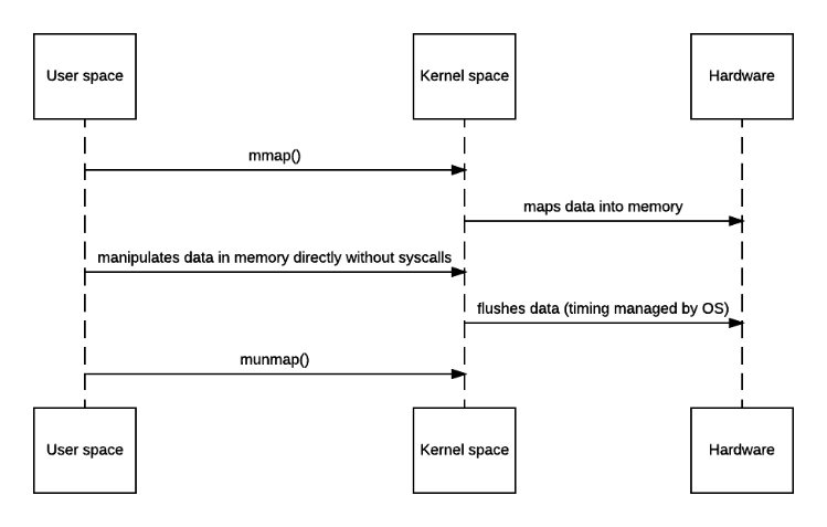 The problem with the above zero-copy approach is that because there’s no user mode actually involved, code cannot do anything other than piping the stream. However, there’s a more expensive yet more useful approach - mmap, short for memory-map.
