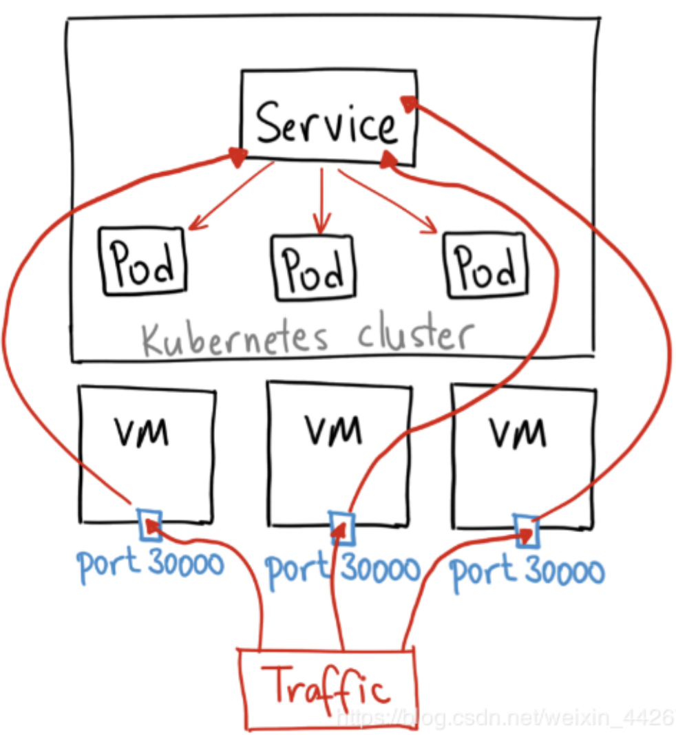 对外表现是为一个访问入口,分配一个集群IP地址,来自这个IP的请求将负载均衡转发后端Pod中的容器。