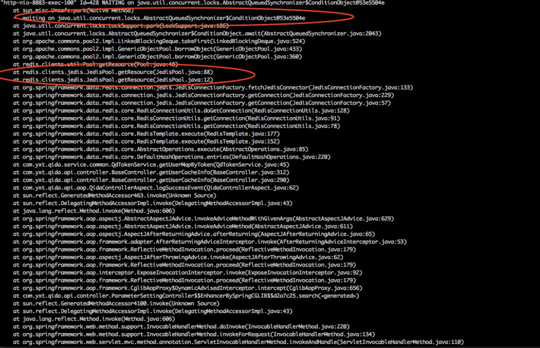 自此。问题原因能确定是 redis连接获取的问题。但是什么原因造成获取不到连接的还不能确定