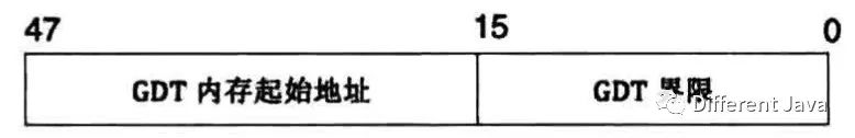 GDTR寄存器(48位)存储的数据格式如下: