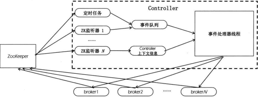 Controller用来协调和管理Kafka集群,在一个Kafka集群中,只有一个broker可以当选Controller,当Controller在的broker宕机后,其他Broker可以竞争当选Controller。