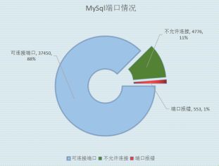 共计255x255x255=16581375个IP,其中有44979个mysql服务器在线,其中4,776个只允许指定的ip连接,553个端口报错,37450个端口可正常连接。在可正常连接的37450端口中,爆破密码成功连接的有1601个,真可谓是“万里挑一”。