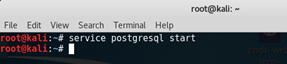 在Kali中,Metasploit使用postgresql数据库存储数据,Metasploit和Postgresql数据库已经在Kali中随系统安装完成。使用数据库之前必须先开启postgresql服务器,命令如下: