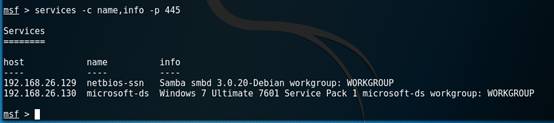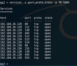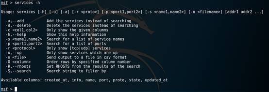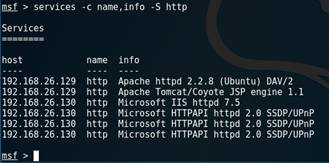 搜索数据库的另一种方法是使用'services'命令。 像以前的例子一样,我们可以方便地提取非常具体的信息。